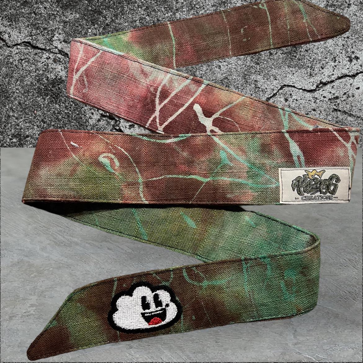 EARTH DAY headband is hand dyed, sewn, and made in the USA. This band features our signature cloth and unique terry cloth. The embroidery signifies the band belongs to a collection. All bands are unique and will age with use. To ensure dye retention we recommend using Castile soap, cold water, and hang dry. Tag not selectable.
