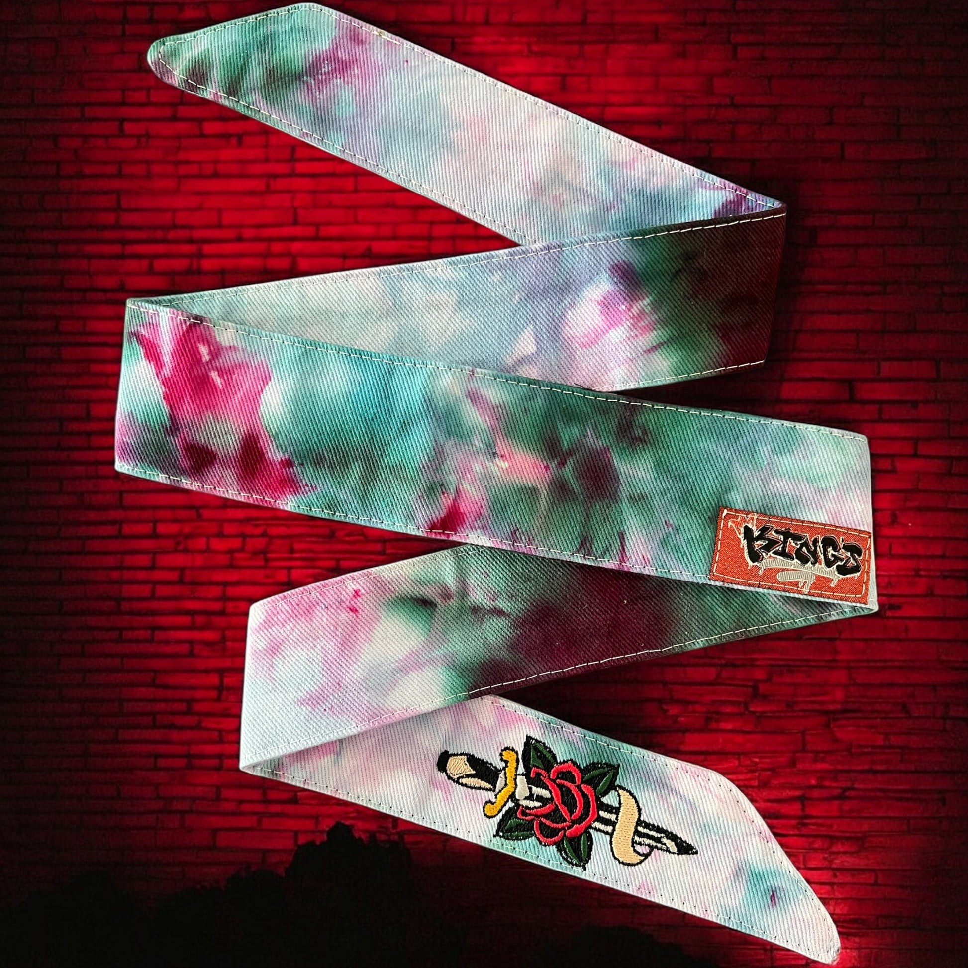 LOVE & LOSS headband is hand dyed, sewn, and made in the USA. This band features our signature bull denim and unique terry cloth. The embroidery signifies the band belongs to a collection. All bands are unique and will age with use. To ensure dye retention we recommend using Castile soap, cold water, and hang dry. Tag not selectable.