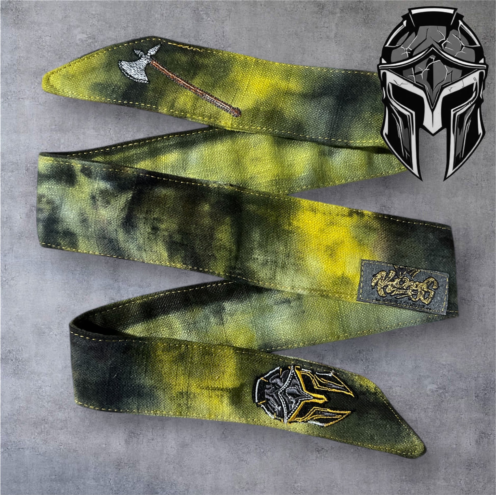 The Ross headband is hand dyed, sewn, and made in the USA. This band features our signature cloth and unique terry cloth. The embroidery signifies the band belongs to a collection. All bands are unique and will age with use. To ensure dye retention we recommend using Castile soap, cold water, and hang dry. Tag not selectable.